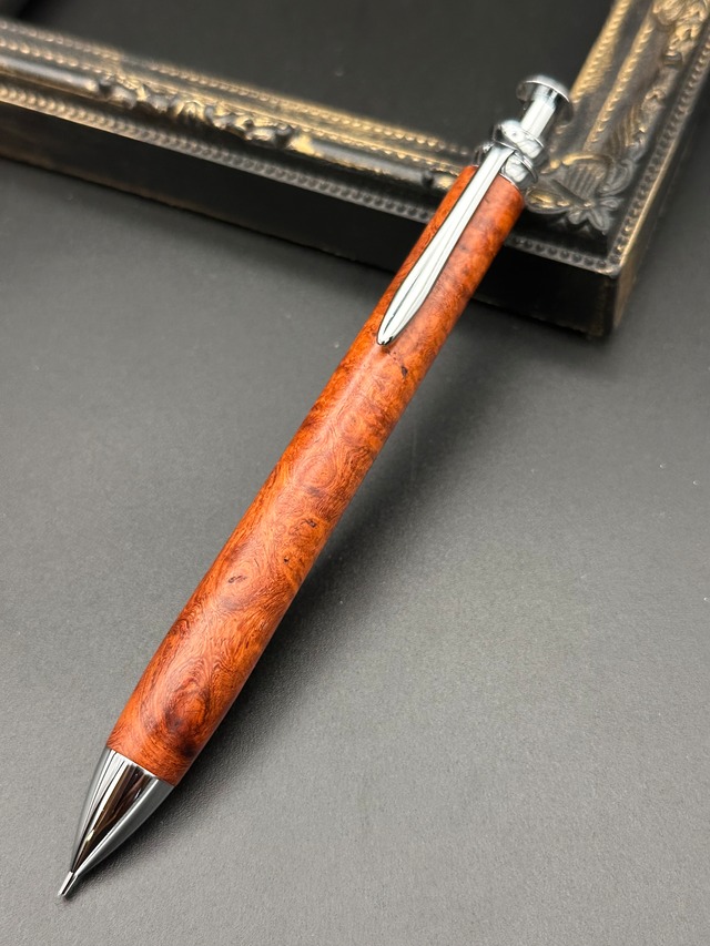 【品名】木軸シャープペン/底重心タイプ(砲弾型口金) 【樹種】花梨(青瘤)38 【サイズ】全長約138mm,軸径約11〜13mm,重さ約27~32g(樹種によって異なります。) 【金具色】シルバー 【仕様】0.5㎜シャープペン(口金ガイドパイプ)のみ ※今回の販売分は、ボールペン金具への変更不可となります。 ・Flambergオリジナル金具と互換性があります。 ・クリップ位置はご自身で変更可能です。
