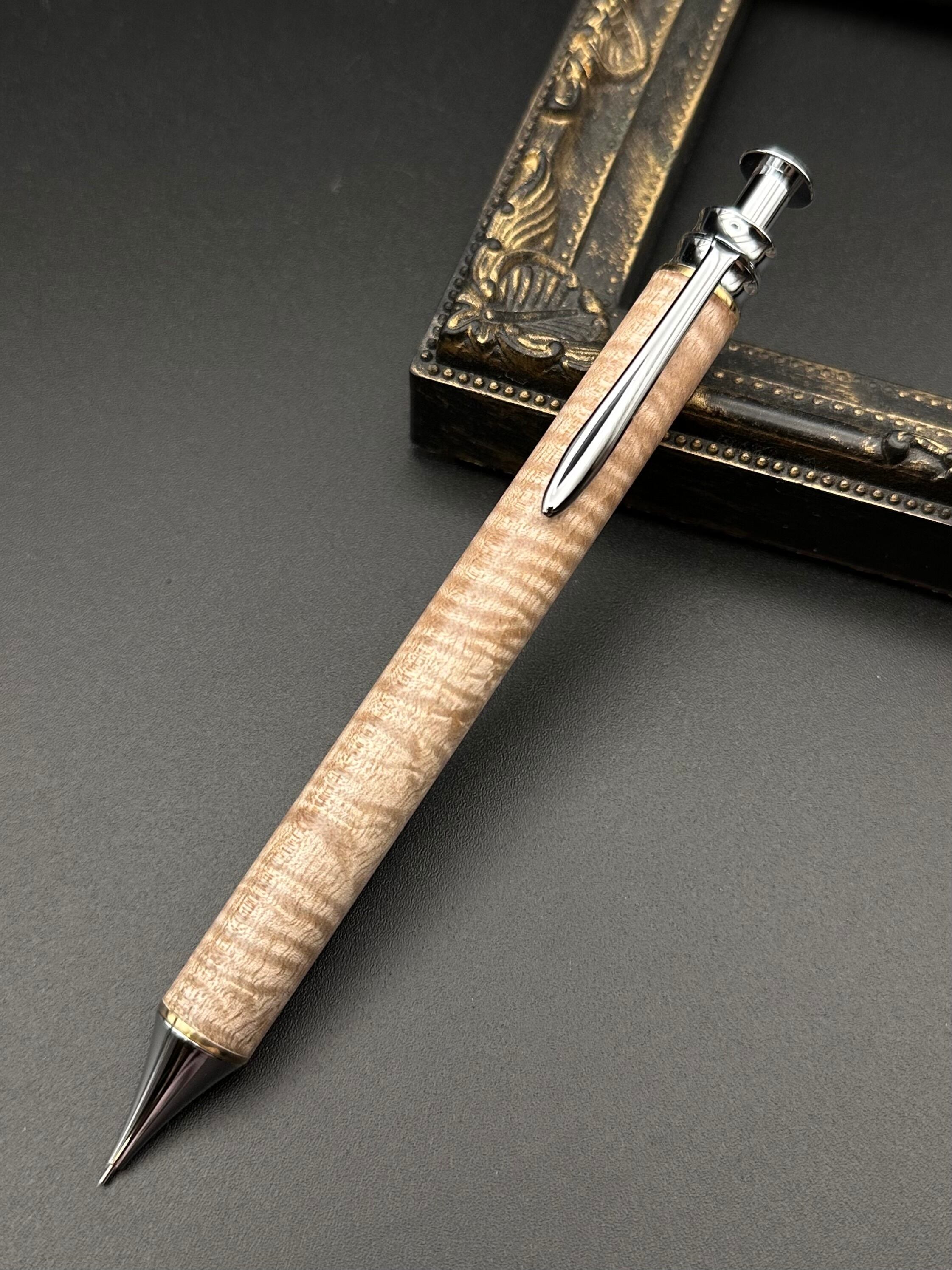 ジェニュインマホガニー(極上カーリー)/木軸 細軸ペン