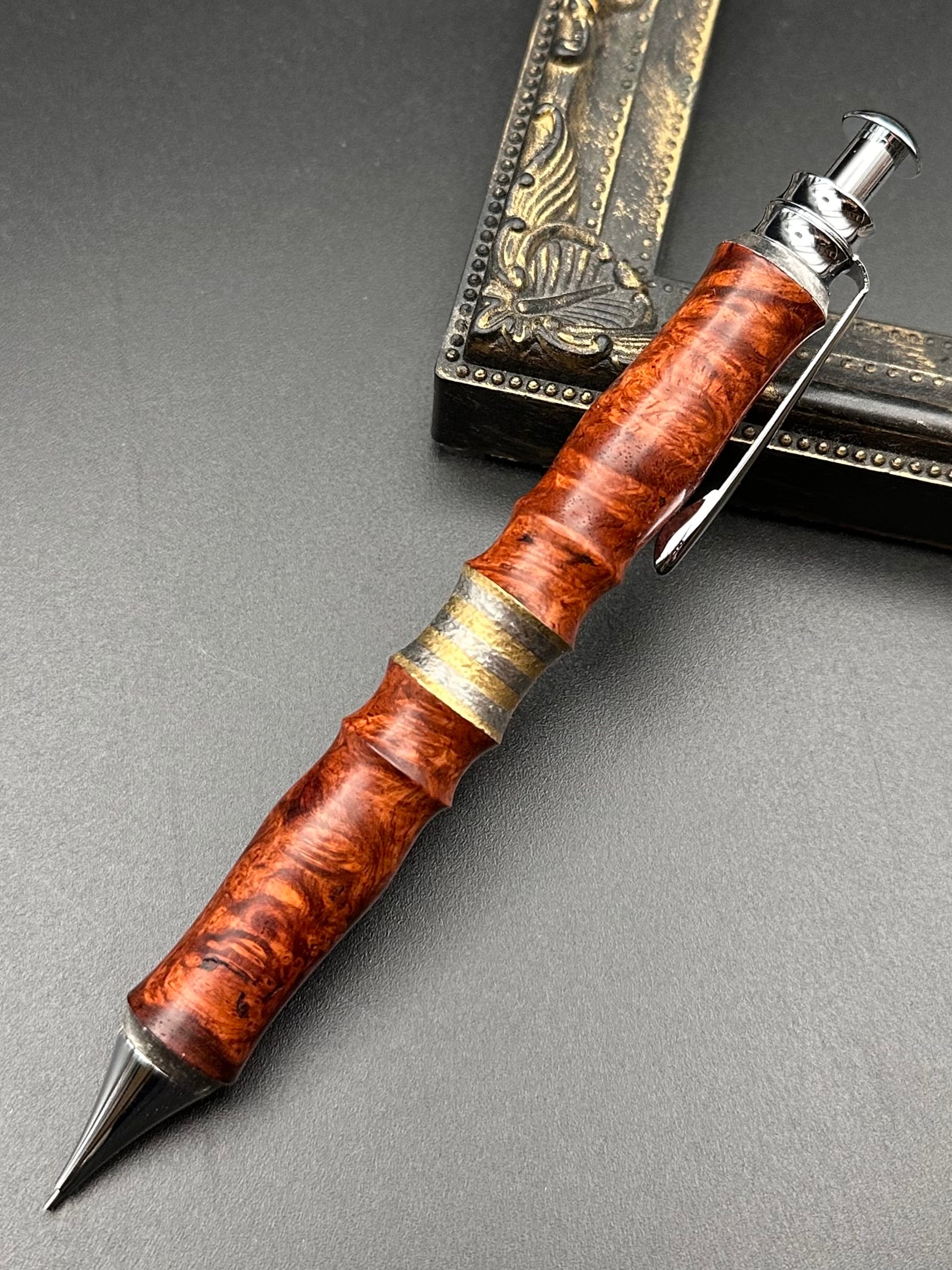 花梨(瘤)×メタルラミネート梨地※おまけ付き/木軸カスタムサンピューラ