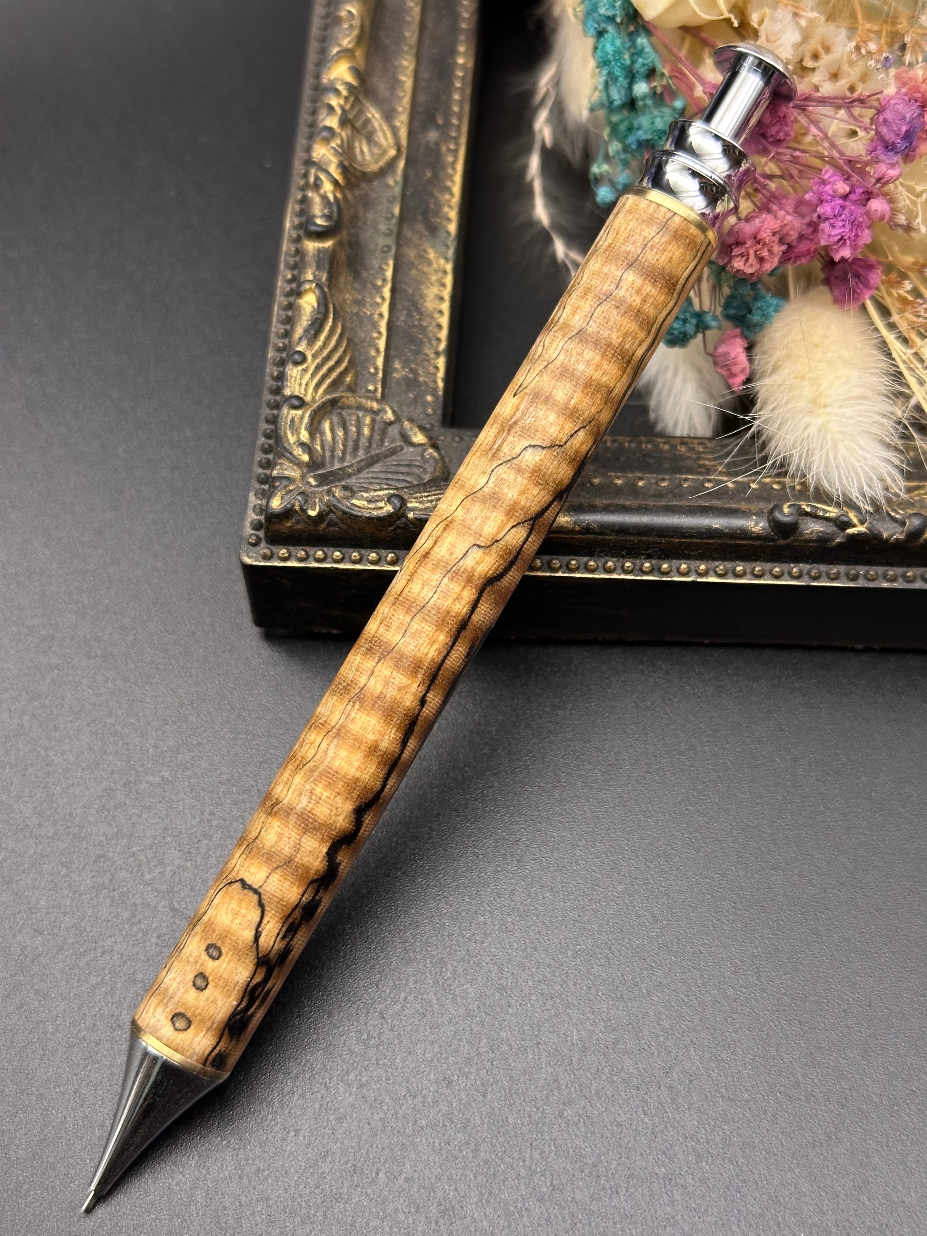 栃(縮杢スポルテッド)/木軸 細軸ペン