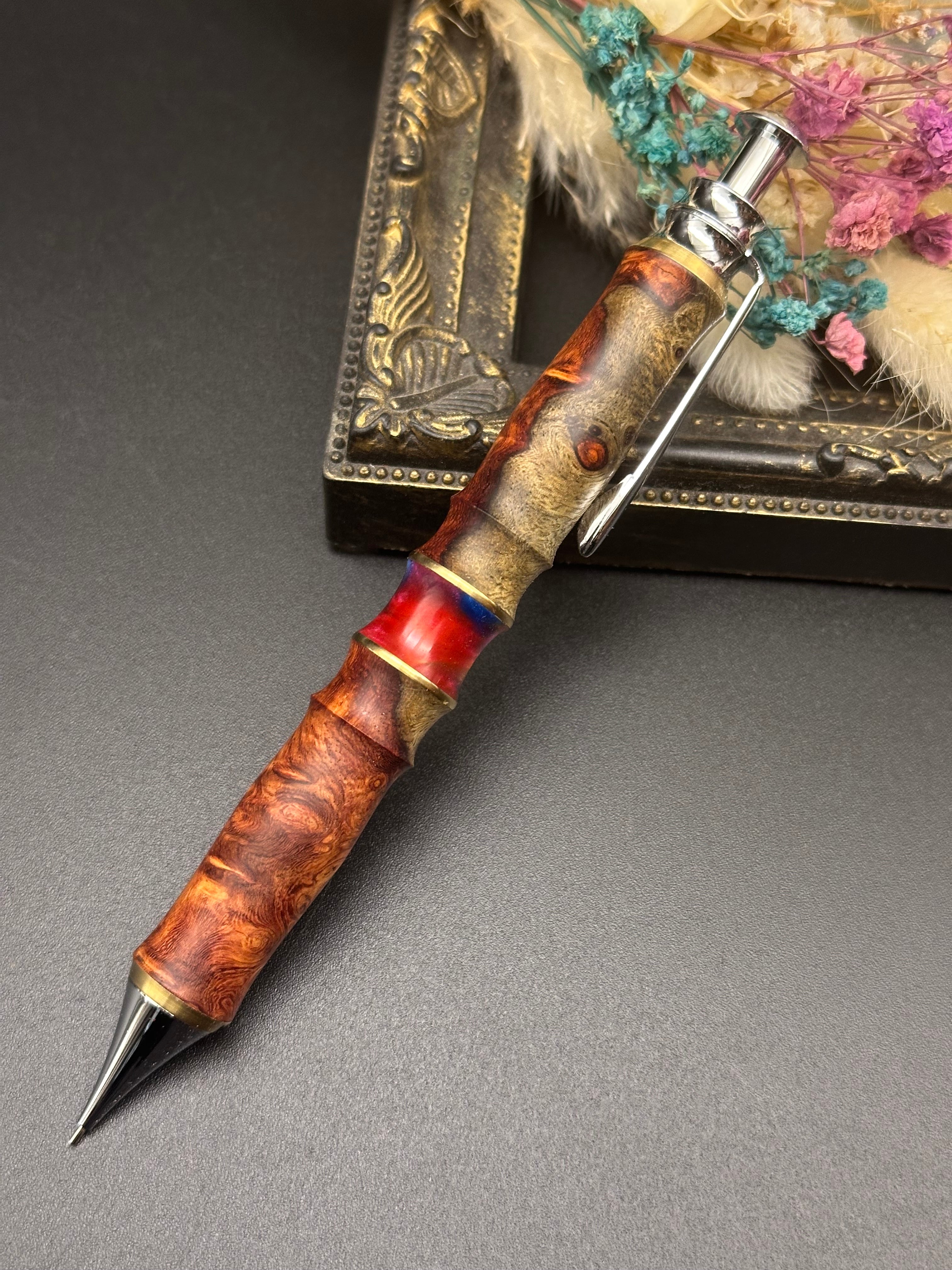 花梨(瘤)紅白杢×レジン/木軸カスタムサンピューラ
