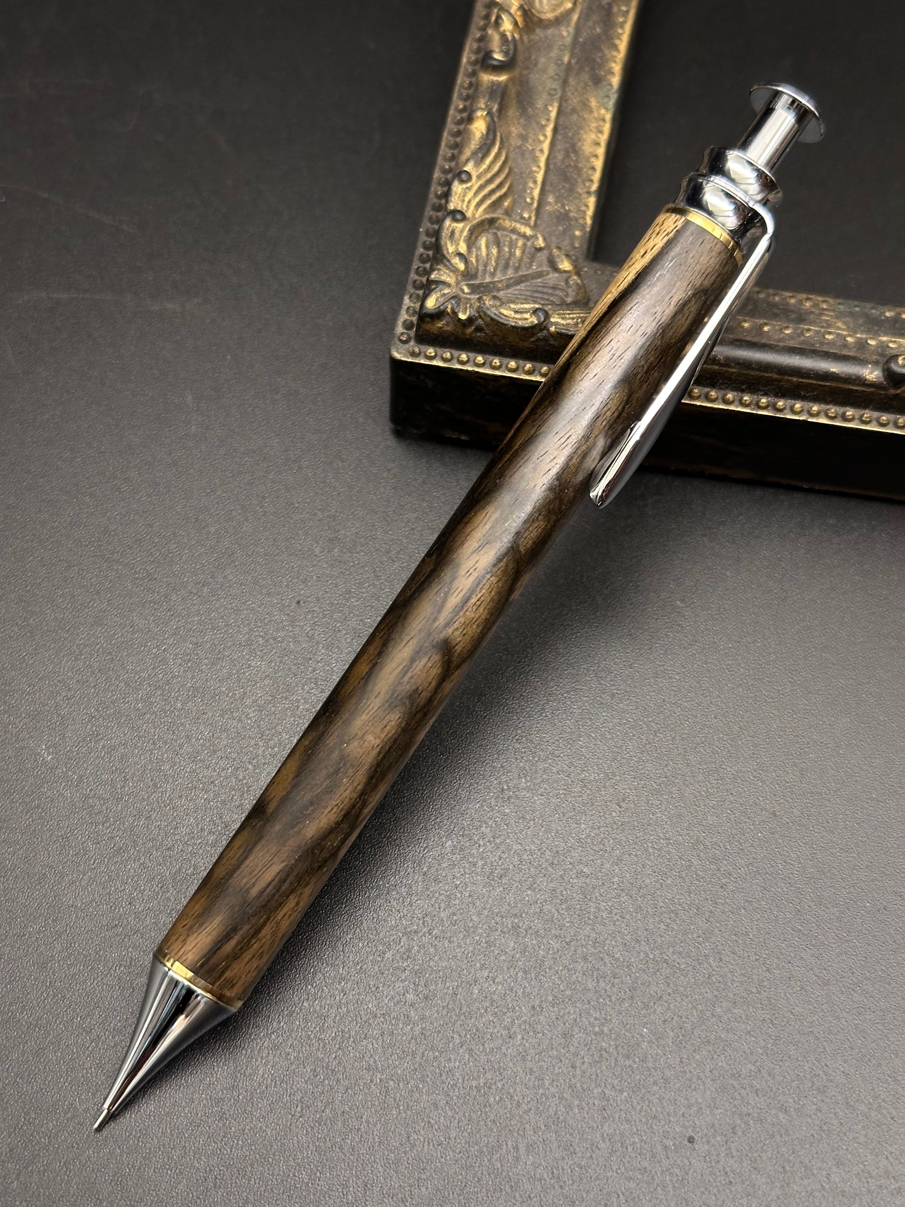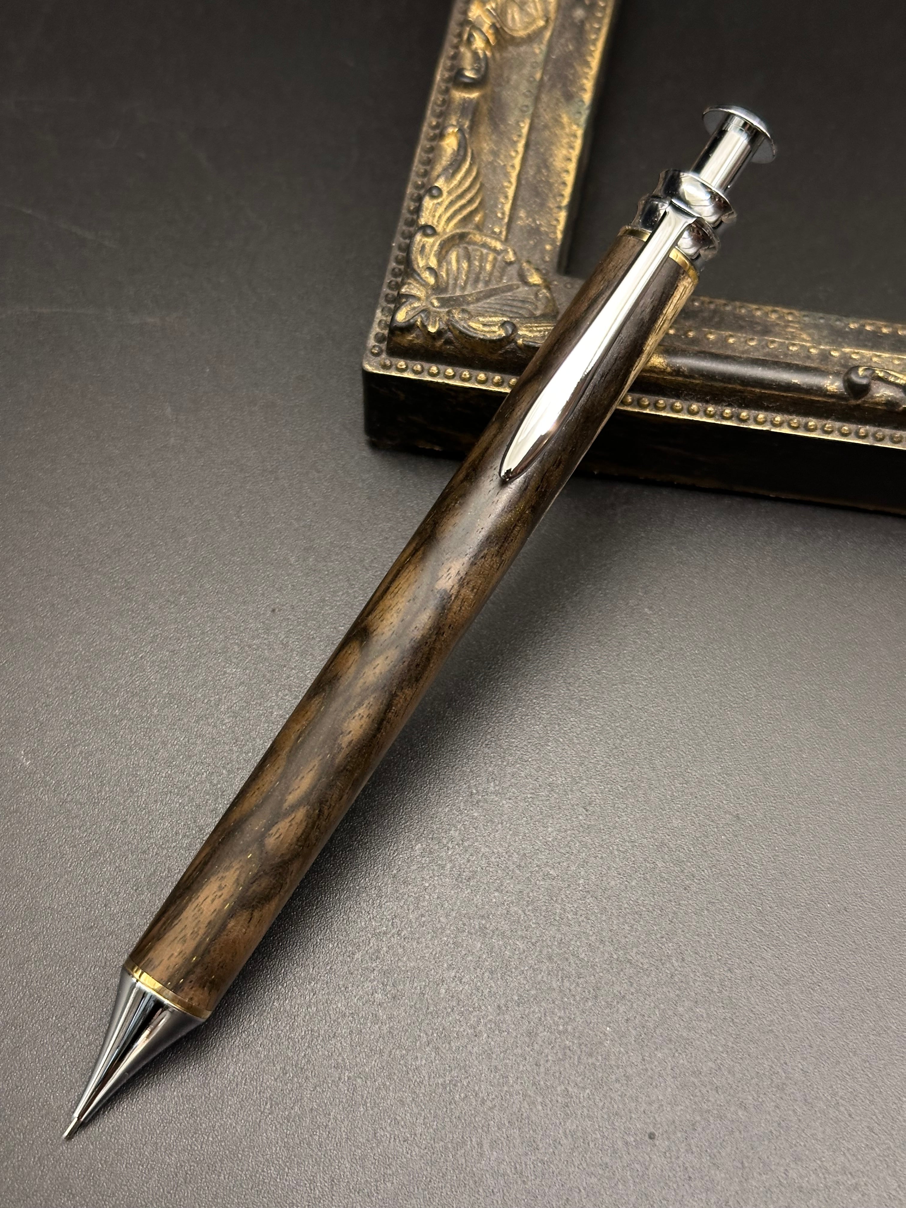 黒柿(孔雀杢)/木軸 細軸ペン