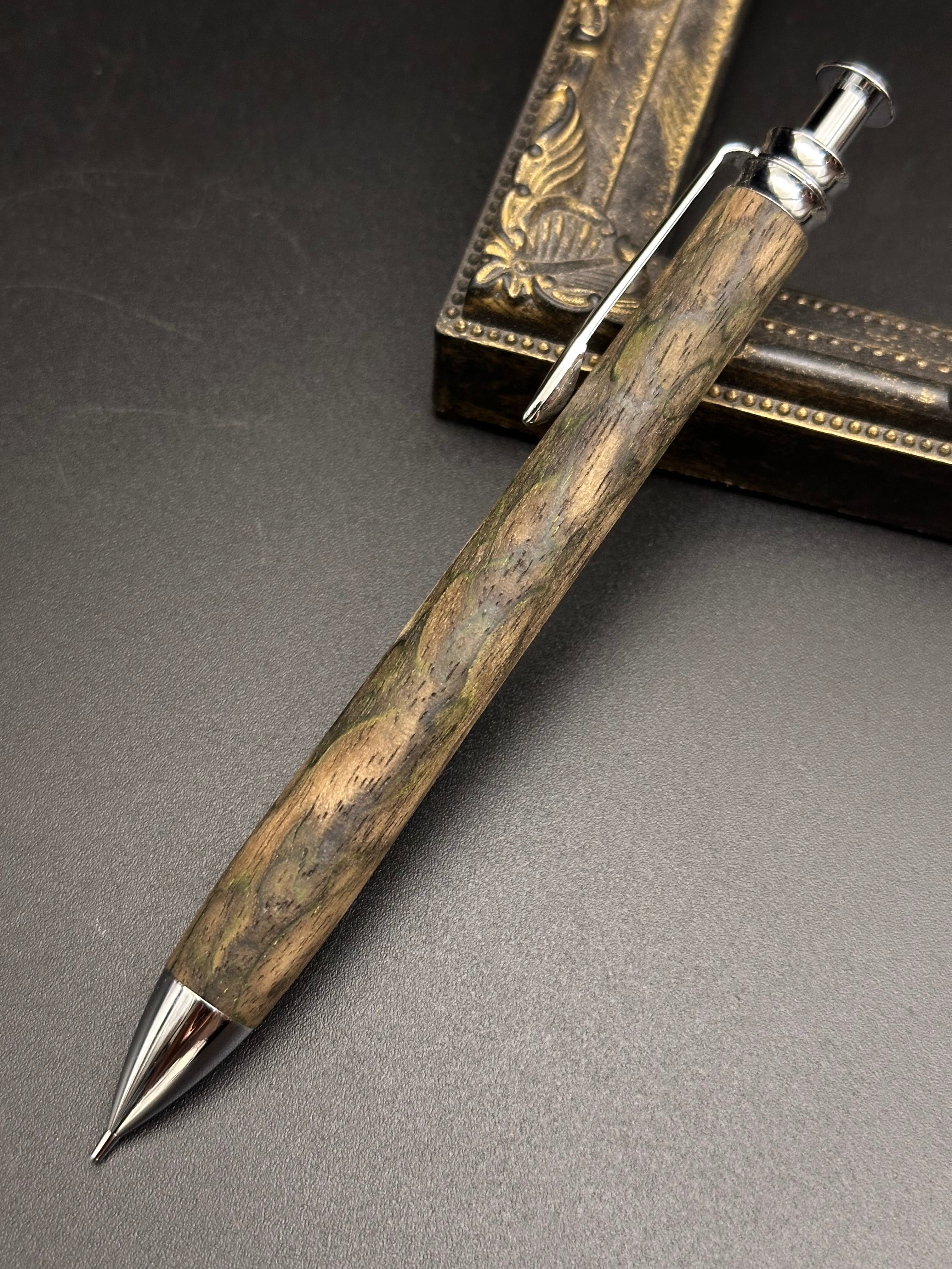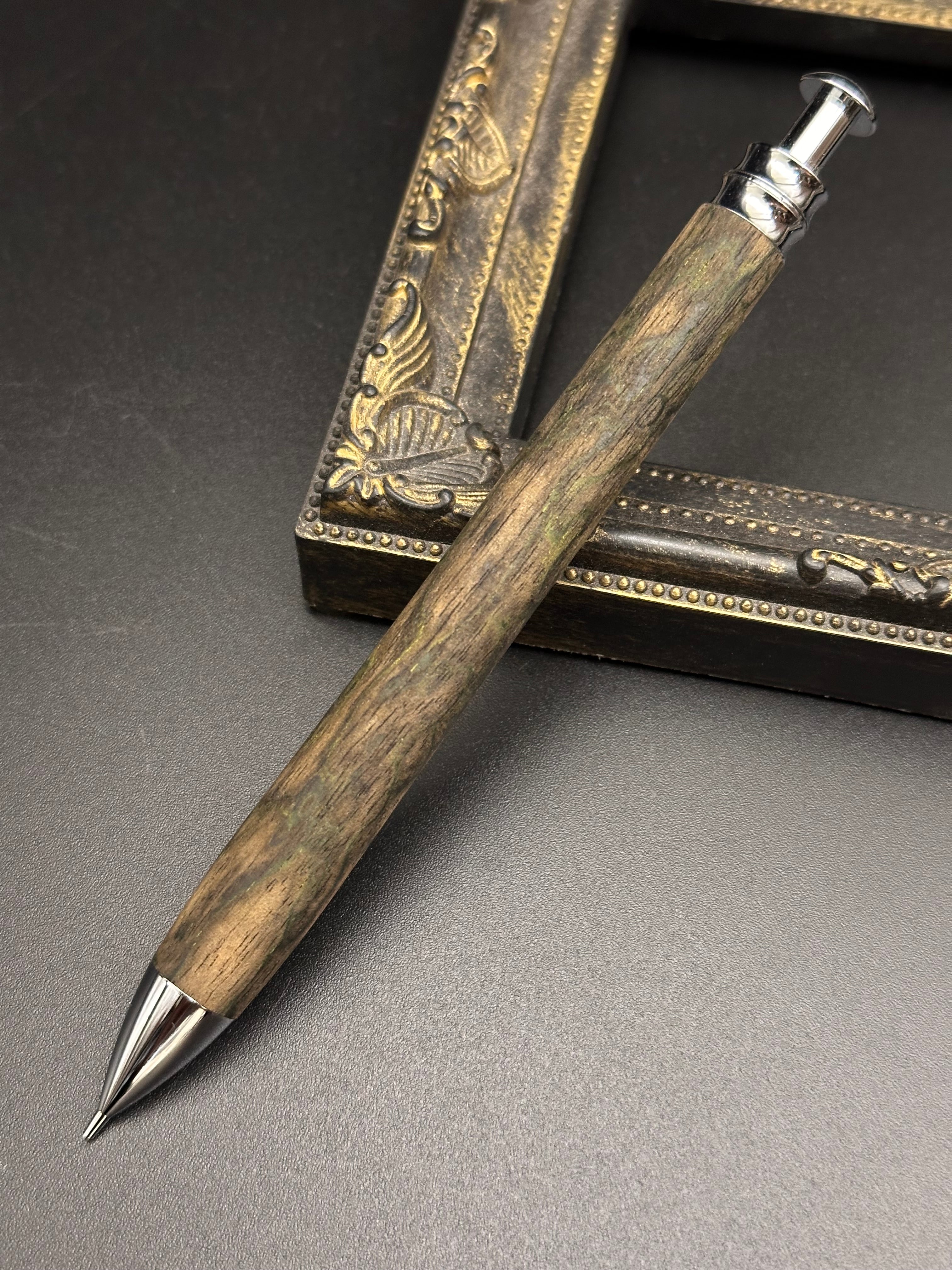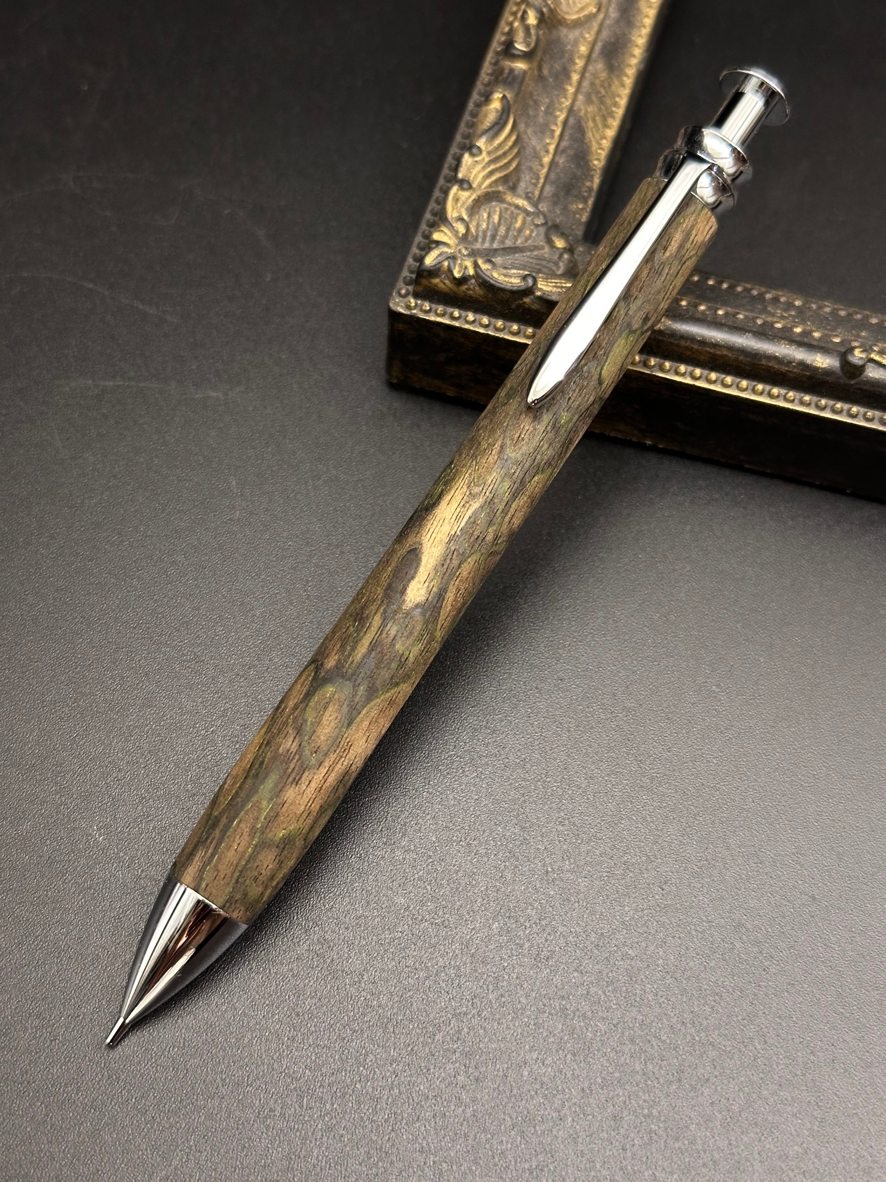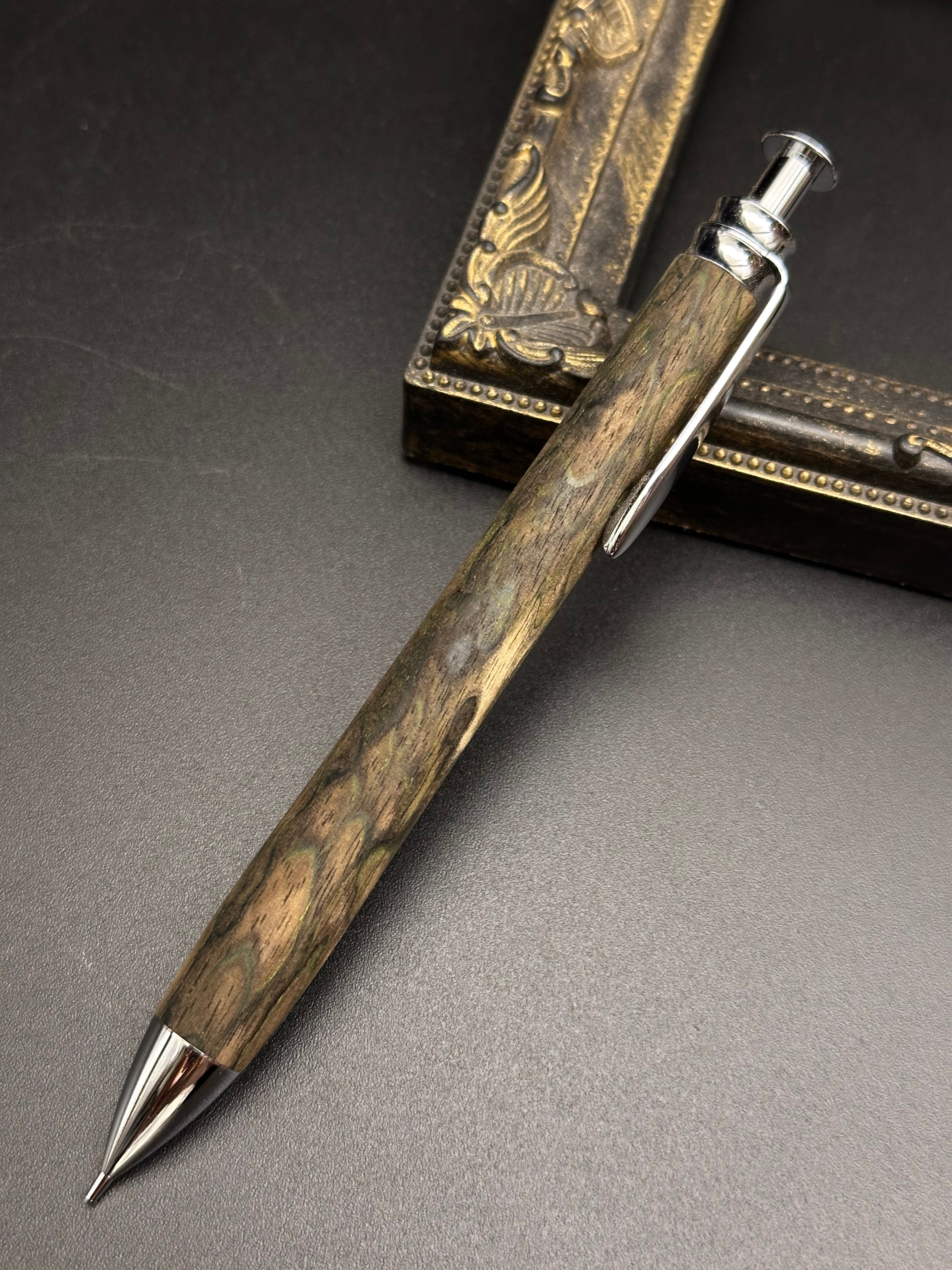 【品名】黒柿(孔雀杢)刃物仕上げ 木軸シャープペン/底重心タイプ(砲弾型口金)