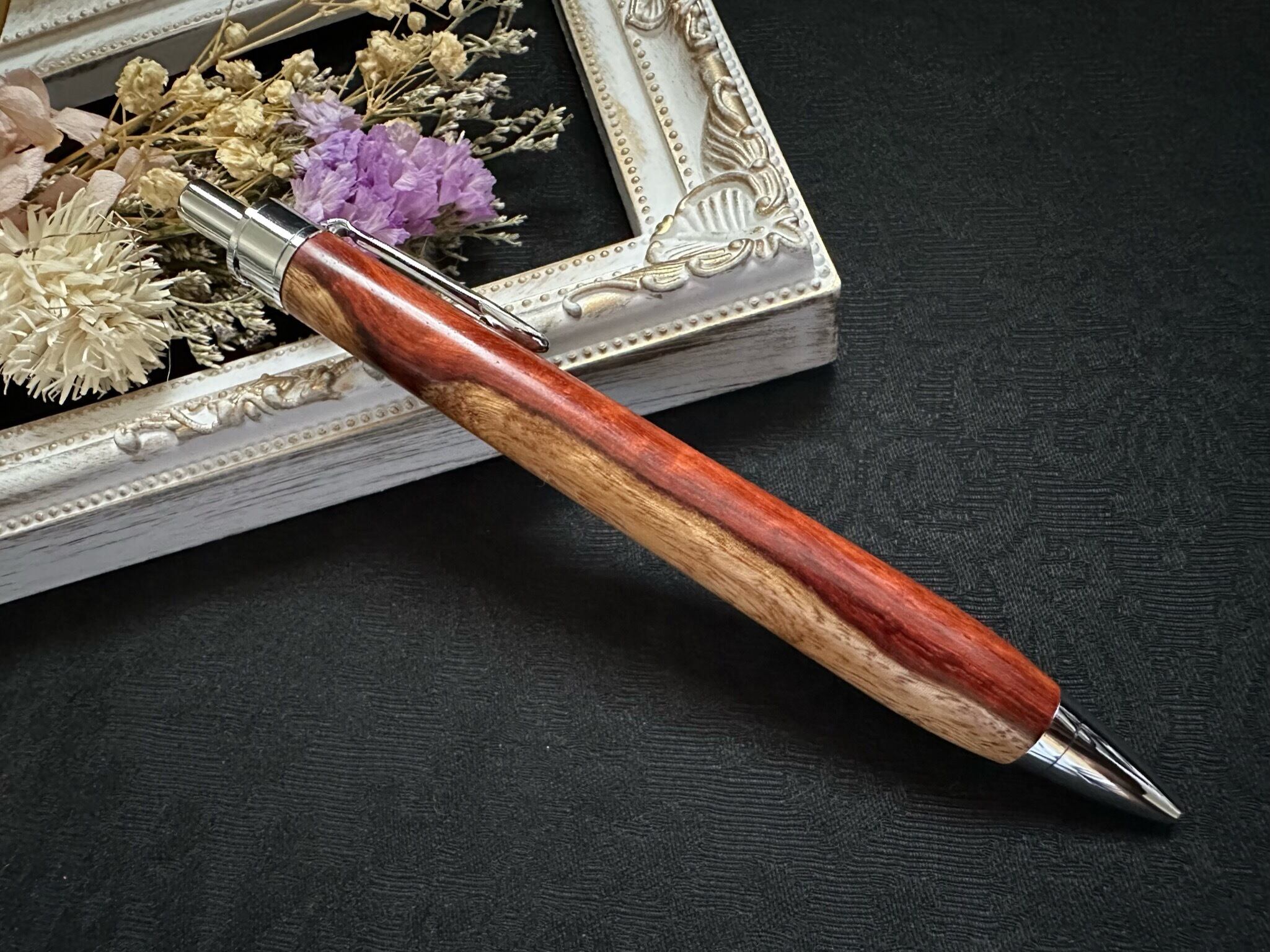 :花梨(瘤)紅白 木軸ボールペン/シャープペン