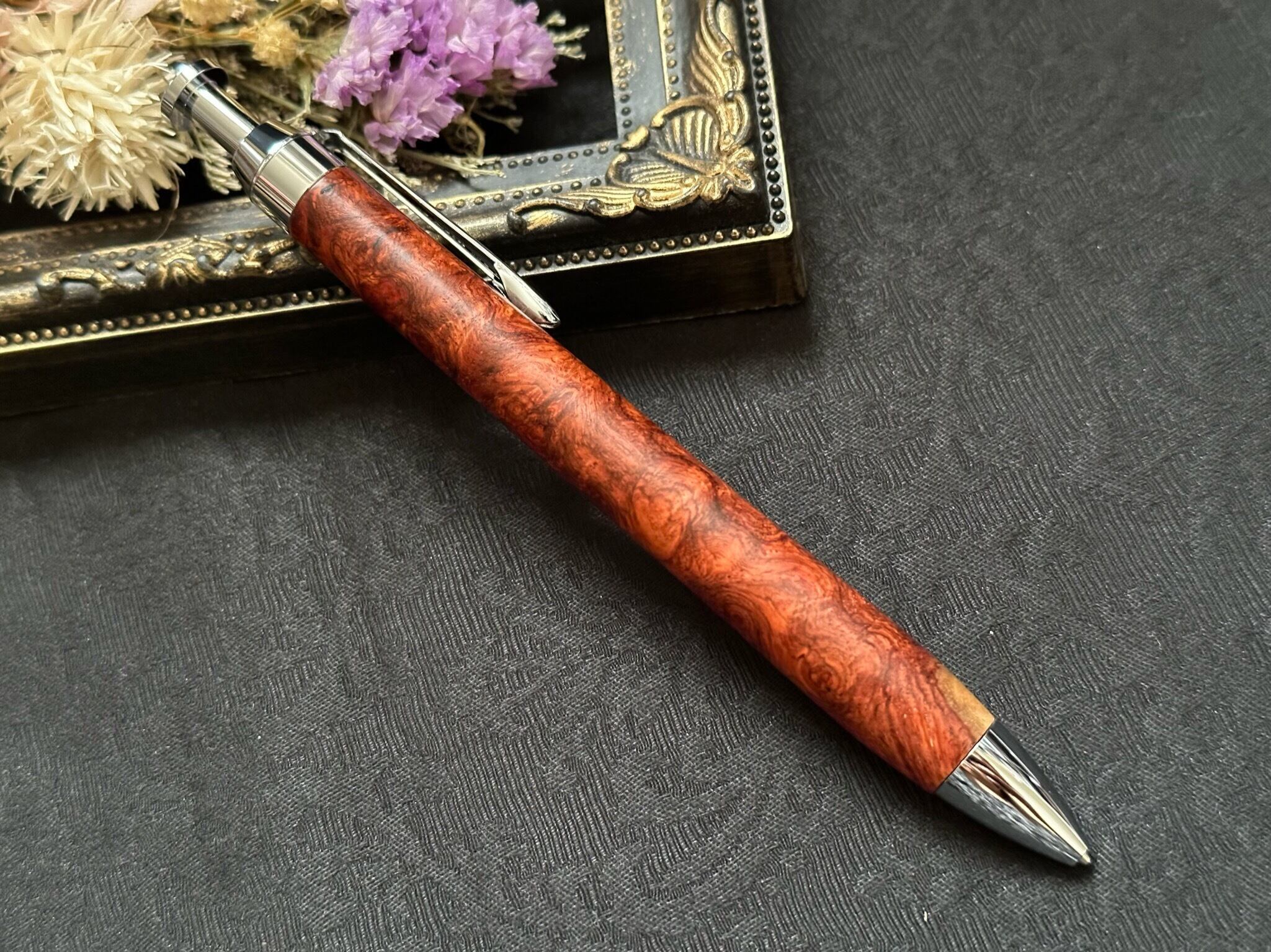 33:本花梨瘤(紅白) 木軸シャープペン