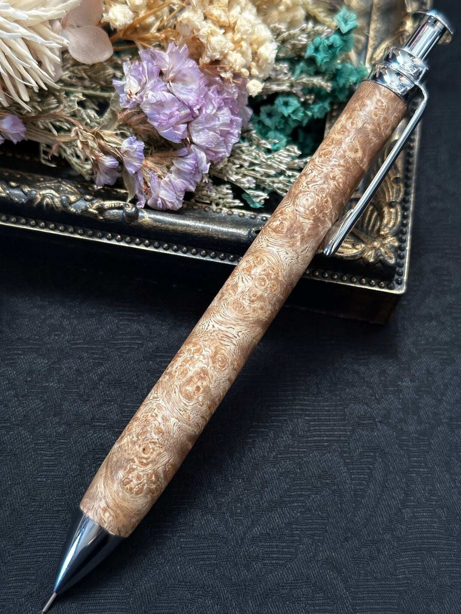 極上 白花梨(瘤)/木軸シャープペン底重心タイプ(オリジナル金具)