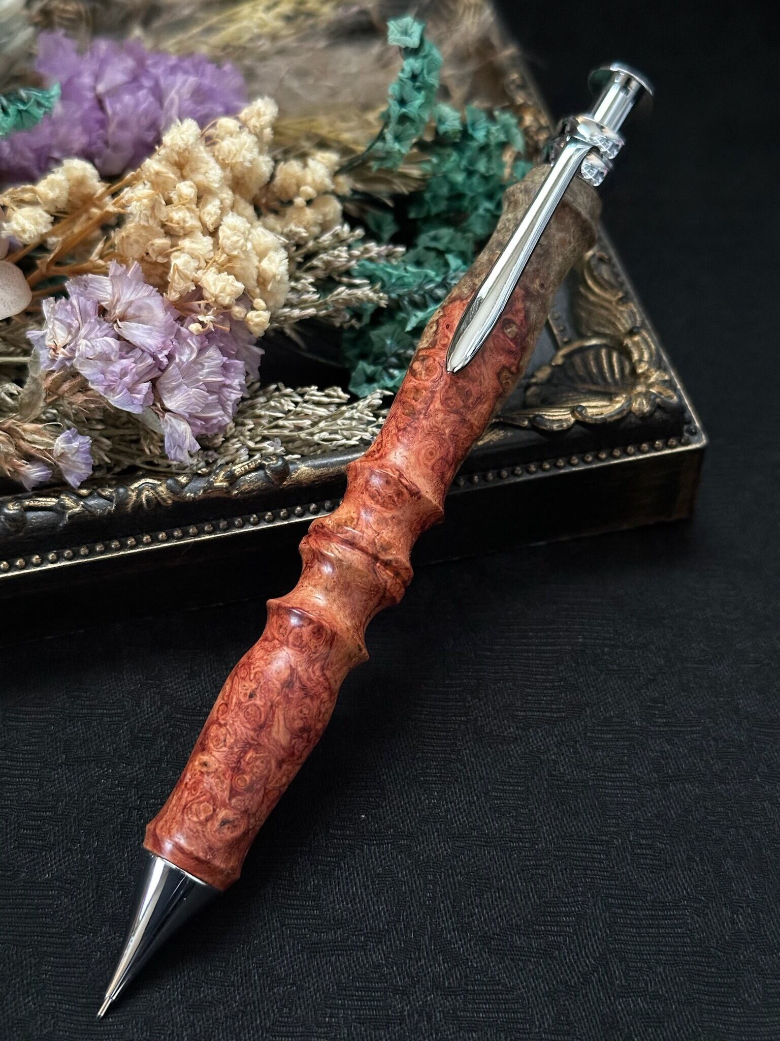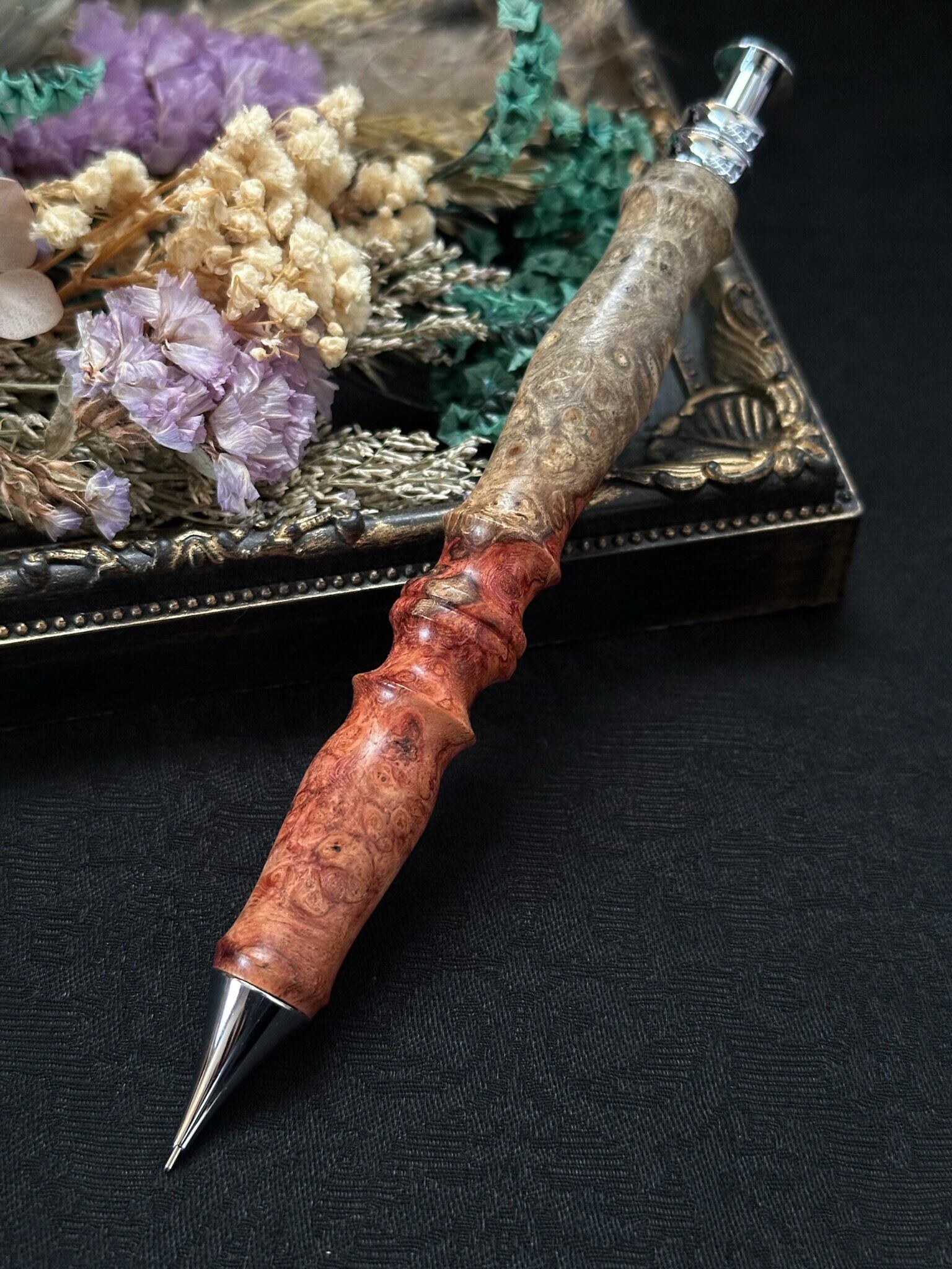 花梨(瘤)紅白/木軸シャープペンサンピューラ(オリジナル金具)