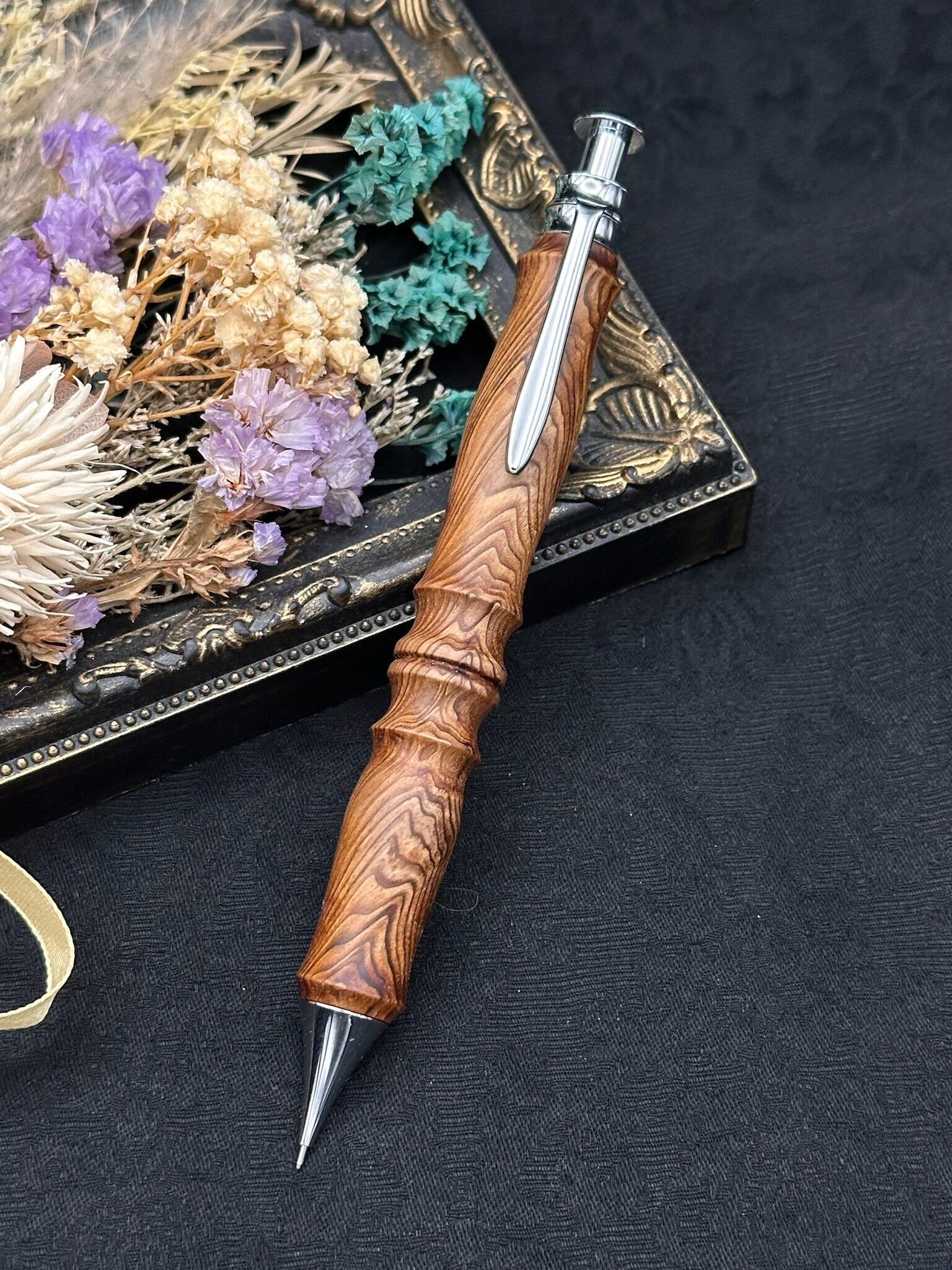 屋久杉(油杢)ペントレイ付き/木軸シャープペンサンピューラ(オリジナル金具)