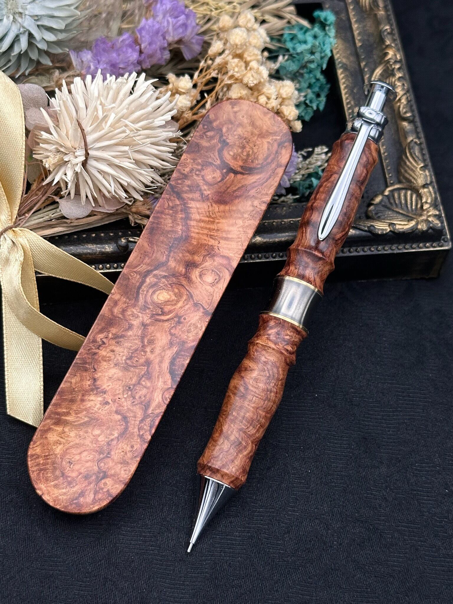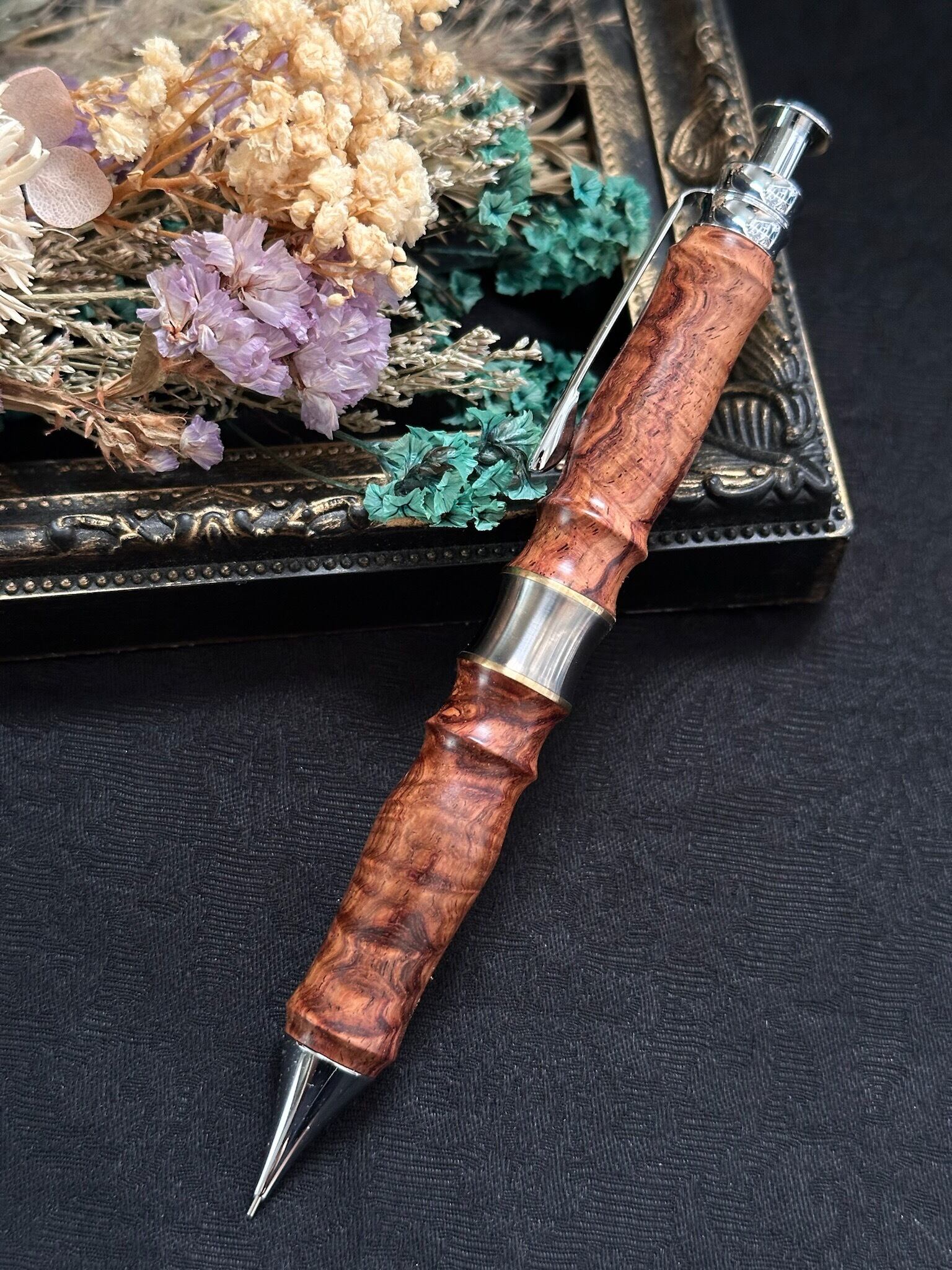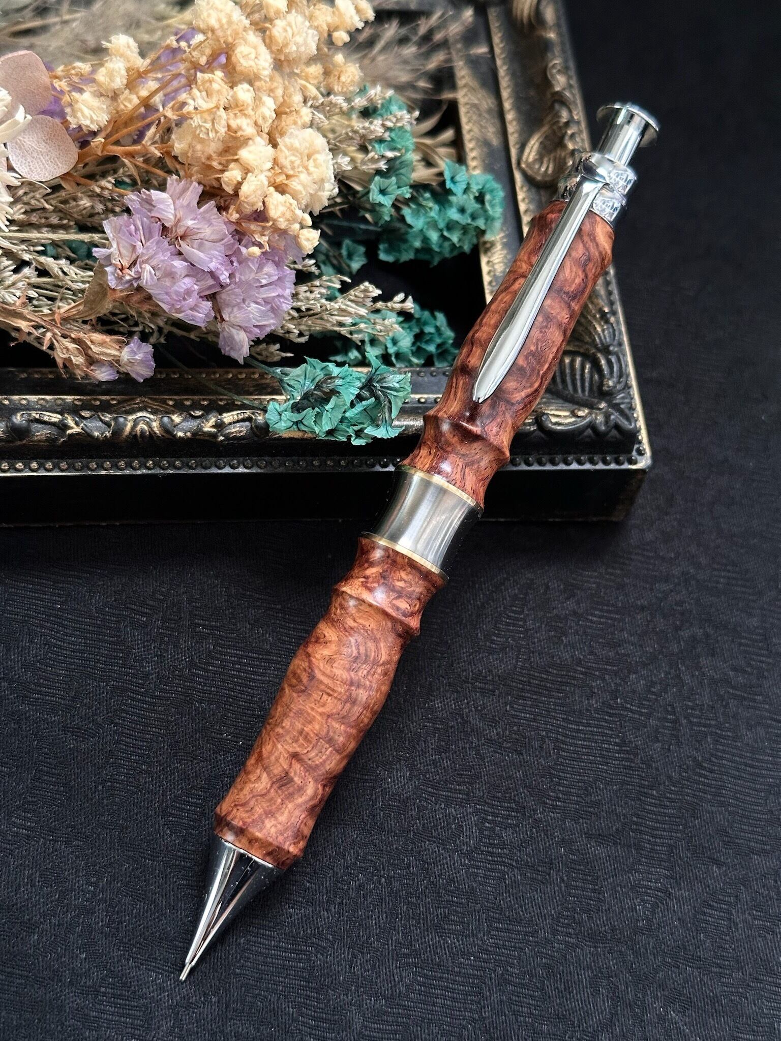 【品名】木軸シャープペン(オリジナル金具)/カスタムサンピューラ(ペントレイ付き)