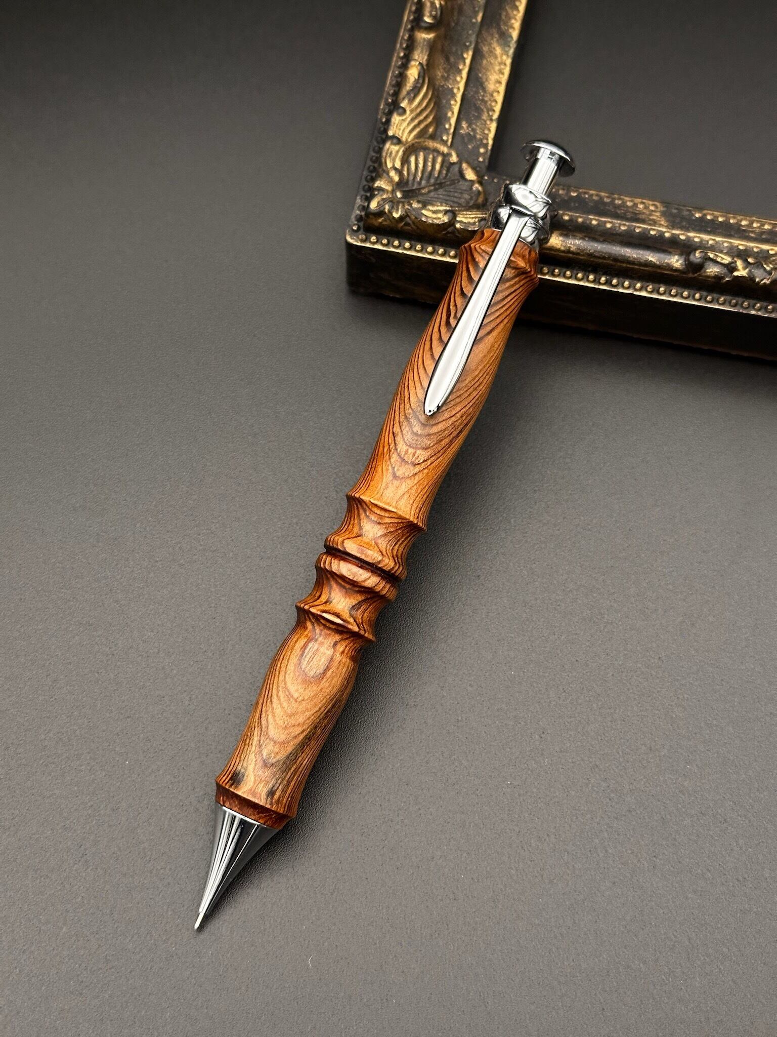 屋久杉(油杢)/木軸サンピューラ シャープペンシル オリジナル金具