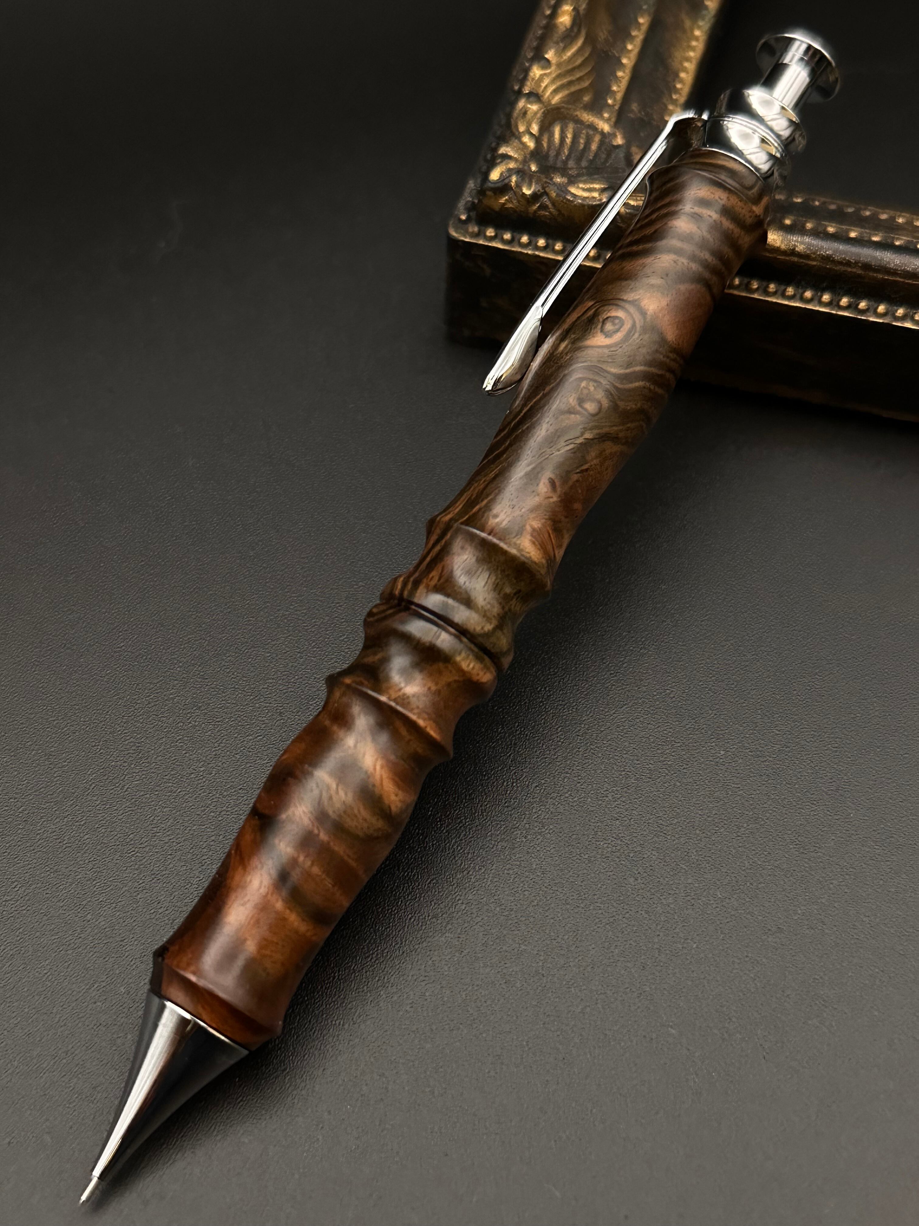黒檀(瘤)特上縞杢※節補修有り/木軸サンピューラ シャープペンシル オリジナル金具