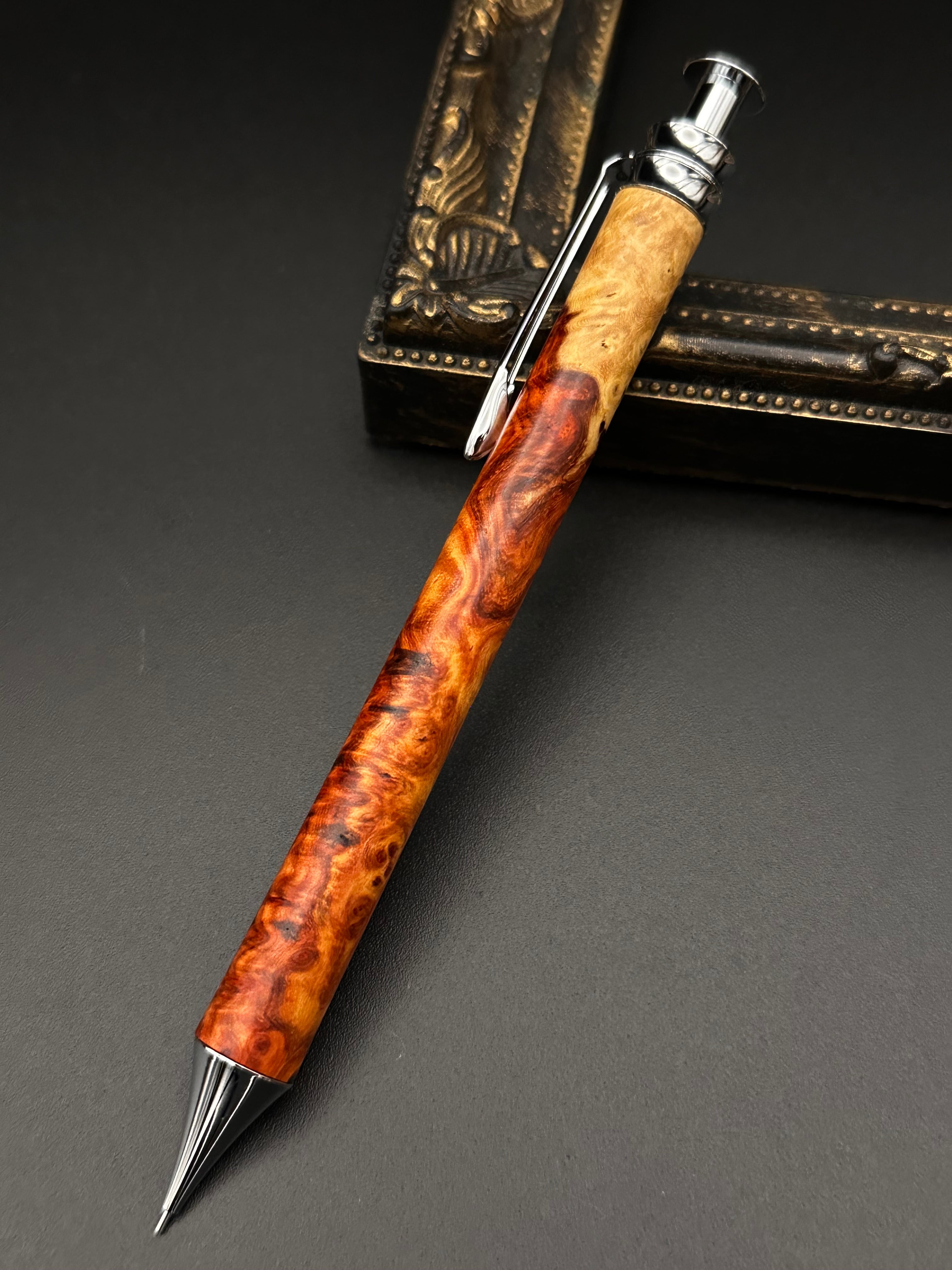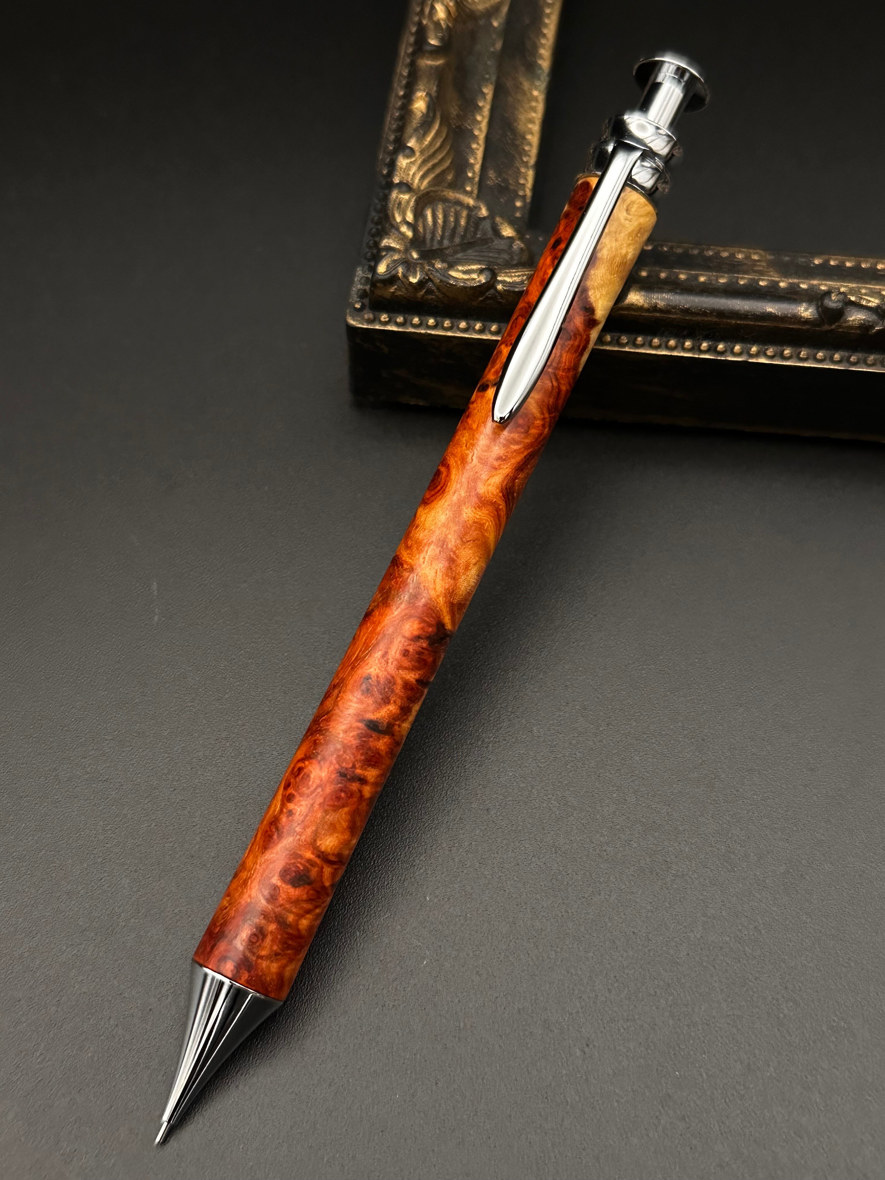 極上アンボイナバール(紅白杢)/細軸シャープペン(オリジナル金具)