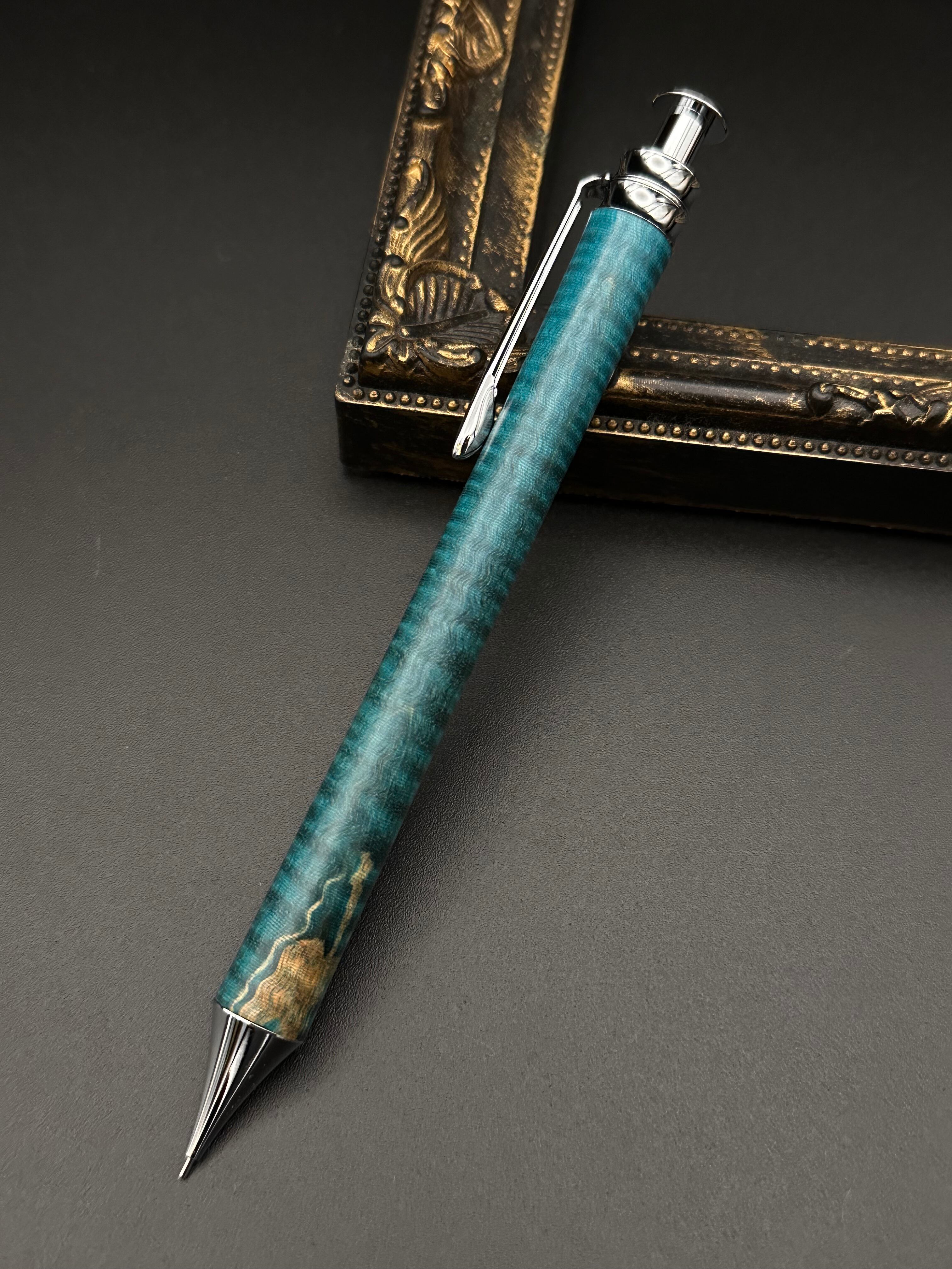 極上栃(スタビライズドウッド)縮み杢/細軸シャープペン(オリジナル金具)